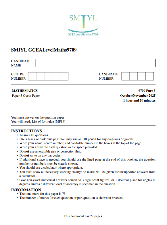 Ace your CIE A Level Maths 9709 Pure 3 exam with this premium guess paper package! Includes a high-quality guess paper and Cambridge style marking scheme. Early access discounts available; don’t miss out!