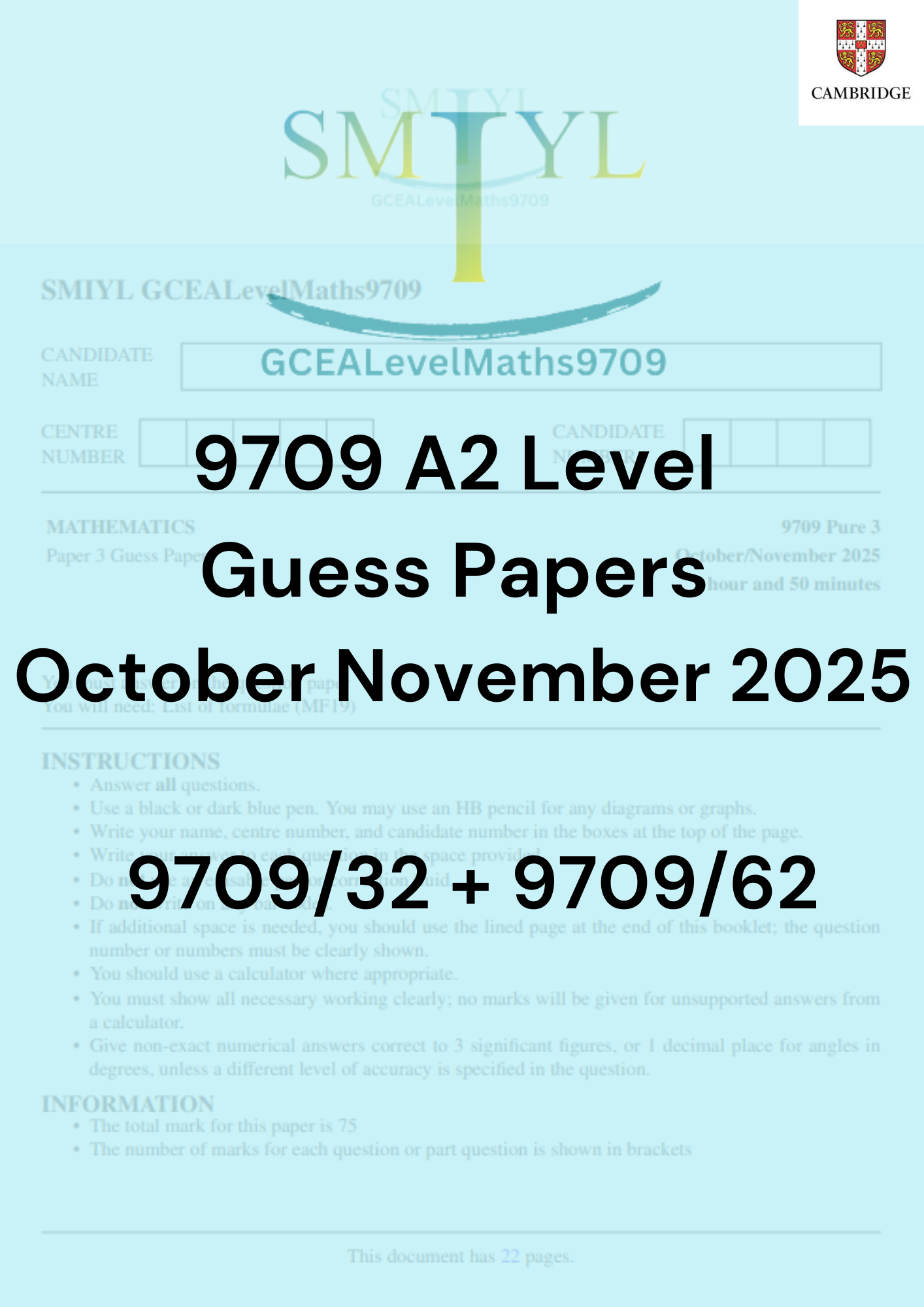 Get ready to ace your CIE A2 Level Maths exams with our all-in-one bundle, featuring premium guess papers for both Pure 3 (9709/32) and Probability and Statistics 2 (9709/62). This powerful combination of resources will help you focus on the most likely exam questions, saving you time and maximizing your preparation.